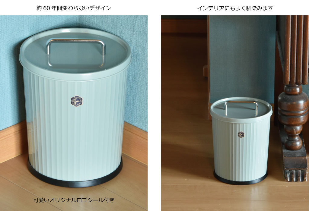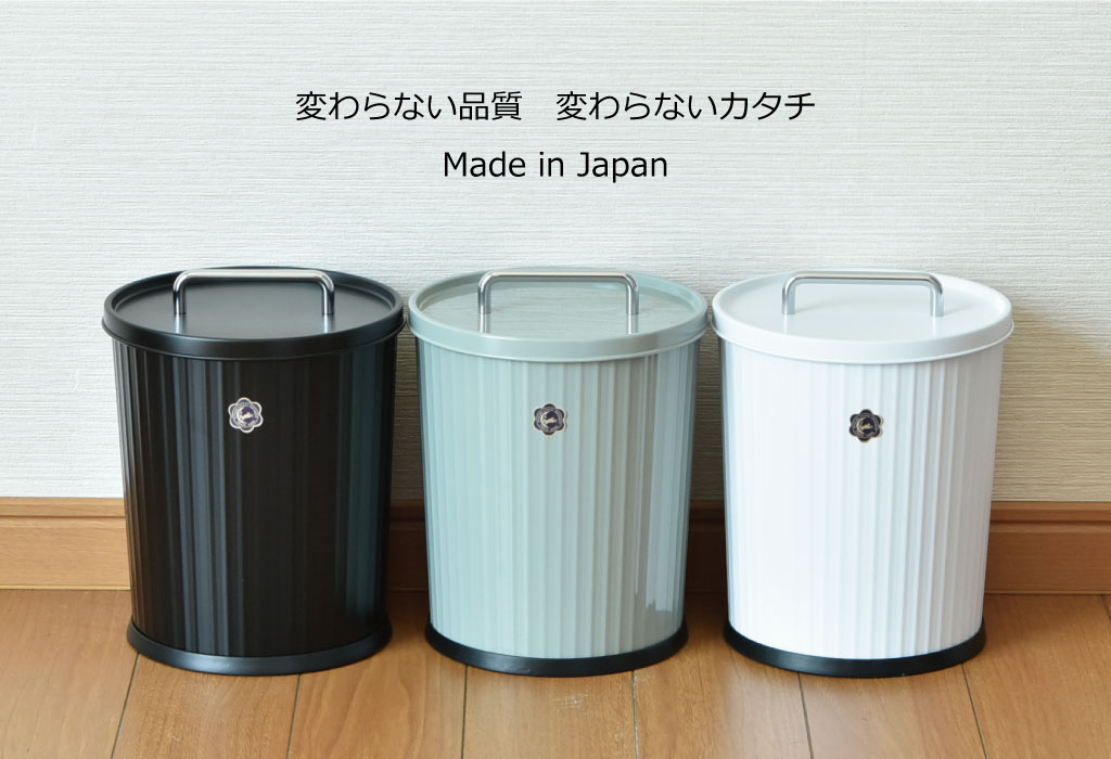 月兎フタ付テーパーストライプは「ぶんぶく」の代表的商品テーパーバケットと「月兎印」とのコラボが実現したスチール製のゴミ箱です。レトロでどこか懐かしい、使えば使うほど味が出て、長く使い続けたくなる逸品です。