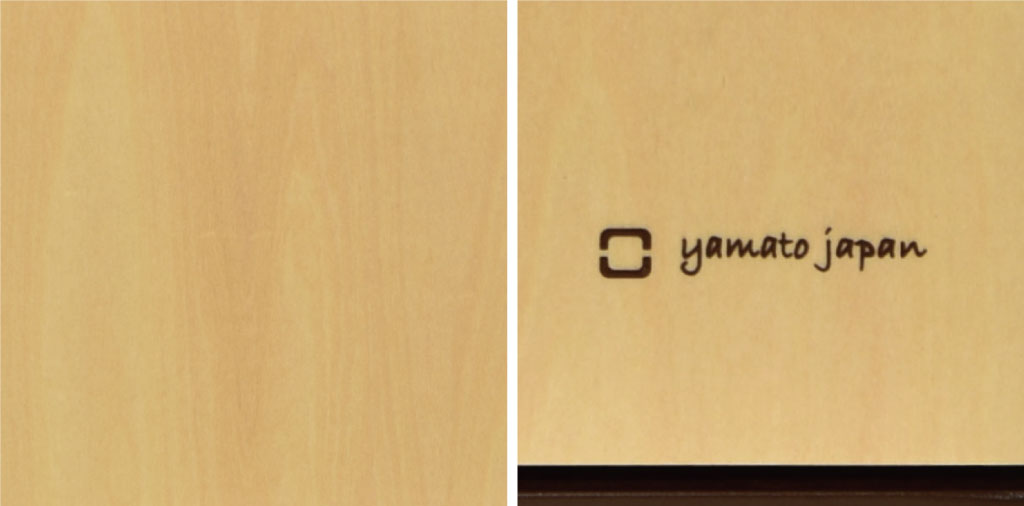 柔らかく美しい木目がシナ材の特徴で、ナチュラルテイストのインテリアによく合います。スイング扉には「yamato japan」のロゴがワンポイントでデザインされています。