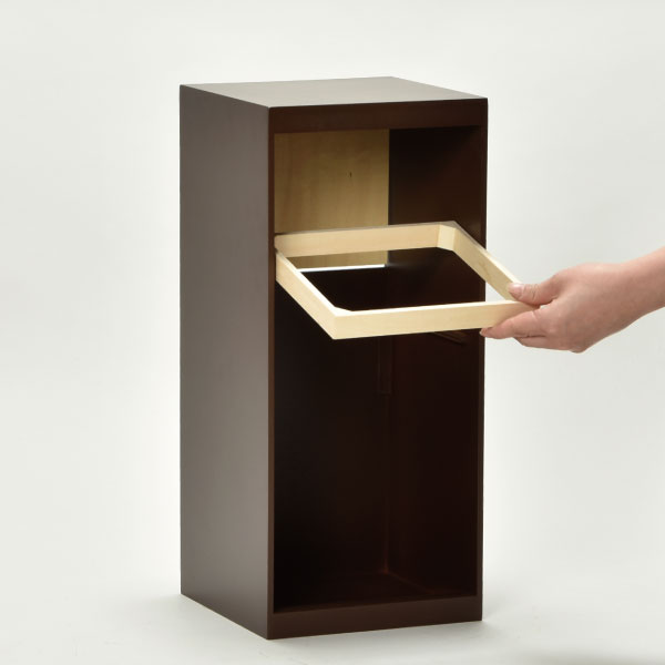 一見ゴミ箱には見えない、高級感のある美しいシナ材の木目と落ち着いたカラーの組み合わせがとてもおしゃれです。インテリアに合わせて選べる淡いカラーは、どんなお部屋にもよく馴染みます。また、職人がひとつひとつ丁寧に仕上げており、木肌がとても滑らかで、木のぬくもりを感じられます。