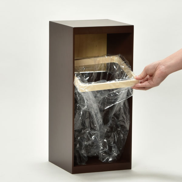 美しい木目と落ち着いたカラーの組み合わせがスタイリッシュなスイング式ゴミ箱