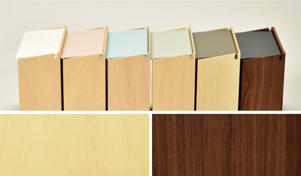 一見ゴミ箱には見えない、高級感のある木目と落ち着いたカラーの組み合わせがとてもおしゃれです。インテリアに合わせて選べるカラーは、どんなお部屋にもよく馴染みます。