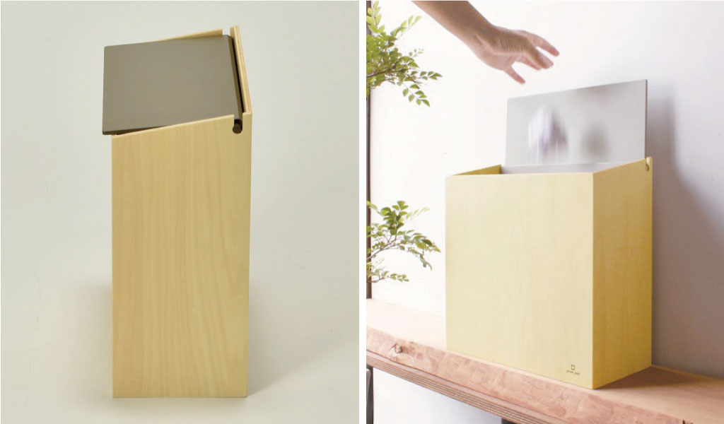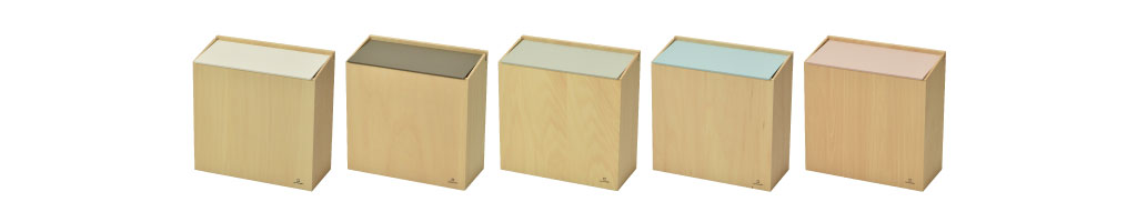 一見ゴミ箱には見えない、木目とカラーの組み合わせがおしゃれです。