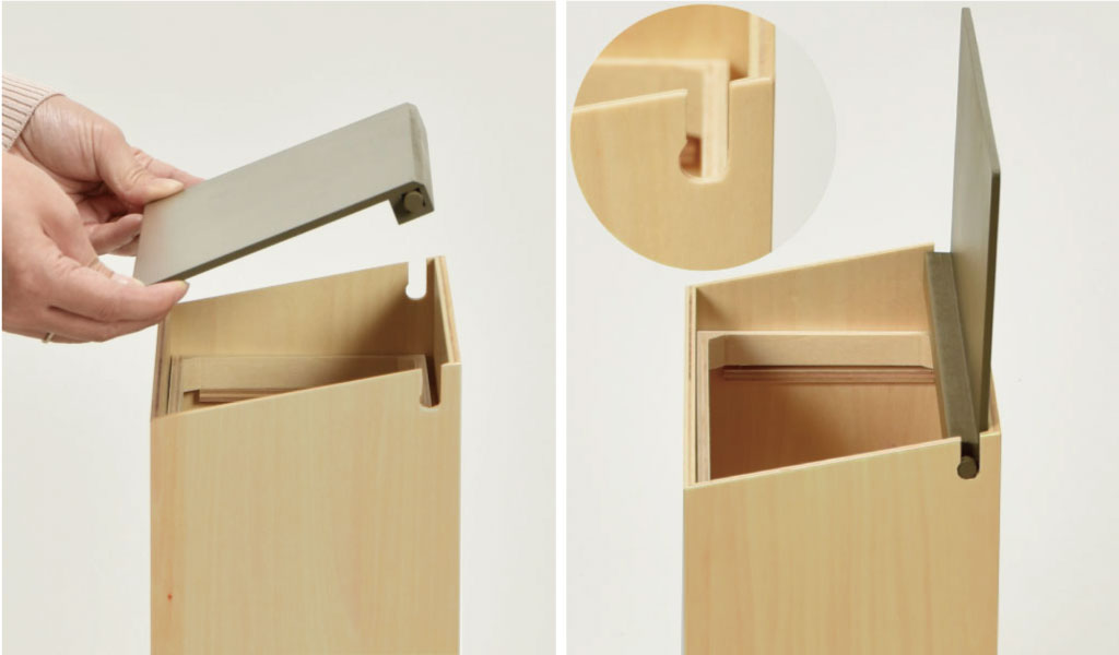 フタは簡単に取り外しができますが、ちょっとした溝の加工で、フタを開けた状態ではフタを取り外すことが出来ない構造になっています。日本の職人の細やかな技術により安全にお使いいただけます。