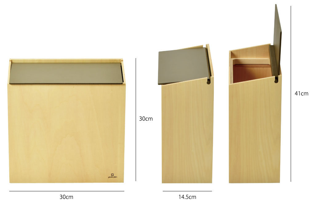 奥行き14.5cmとスリムで場所をとらない木製ゴミ箱です。