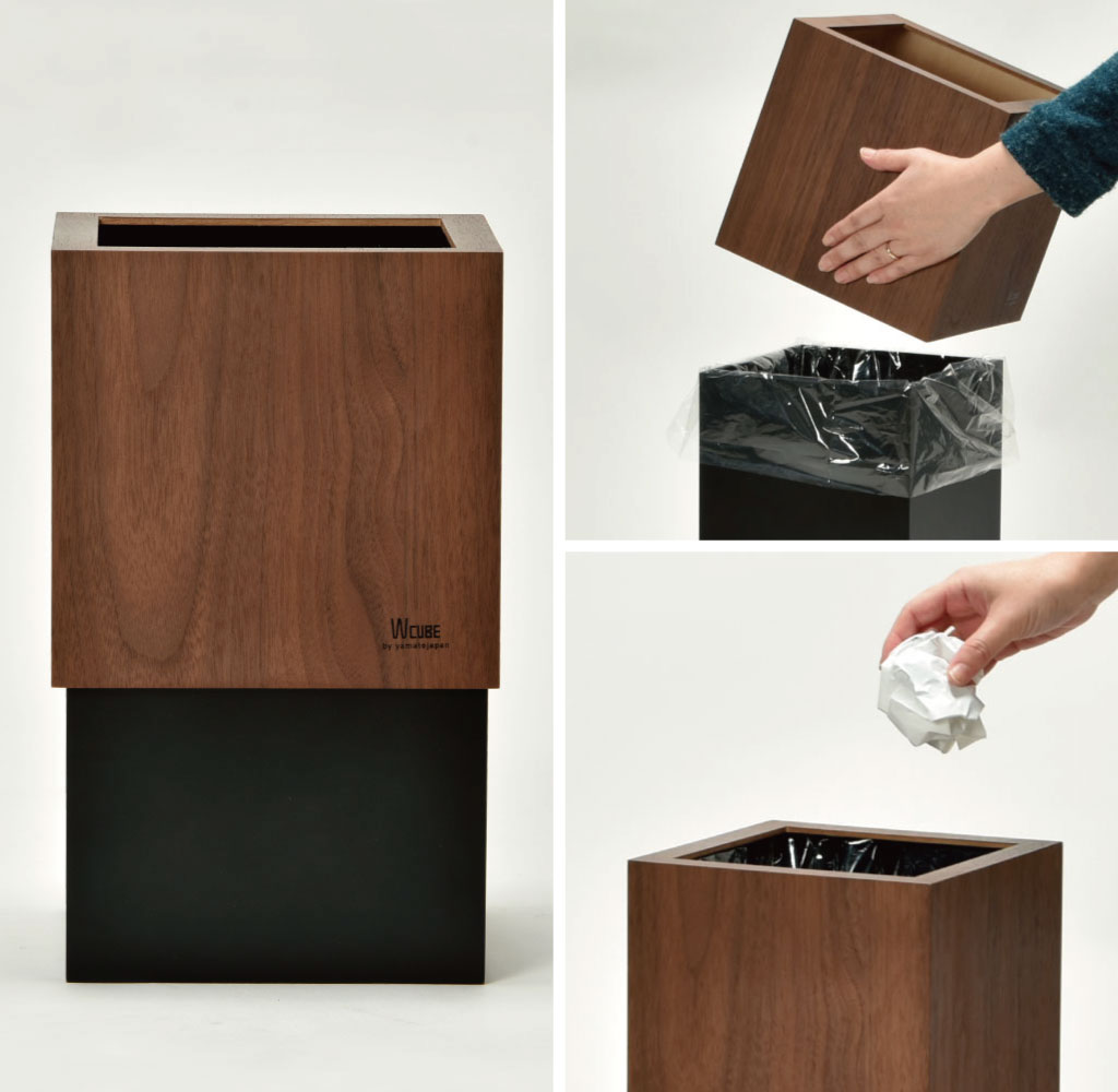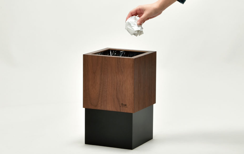 美しい木目と落ち着いたカラーの組み合わせがで高級感のある角型ダストボックス