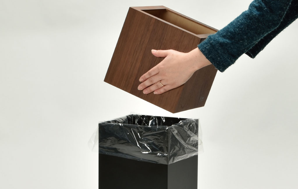 一見ゴミ箱には見えない、高級感のある美しいウォールナット材の木目と落ち着いたカラーの組み合わせがとてもおしゃれです。インテリアに合わせて選べるカラーは、色々なお部屋によく馴染みます。また、職人がひとつひとつ丁寧に仕上げており、木肌がとても滑らかで、木のぬくもりを感じられます。