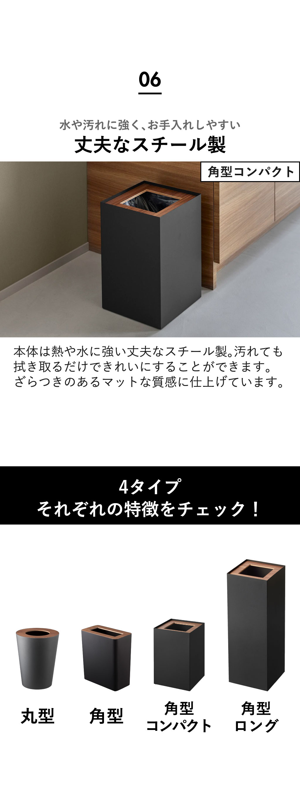 開口部が広く、ゴミもサッと捨てられます。本体は熱や水に強い丈夫なスチール製。