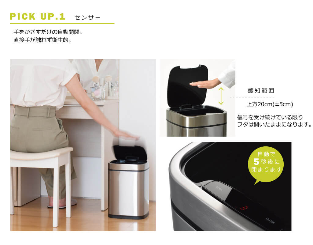 【 JAVA ROMAシリーズ 自動開閉式 ステンレス センサーゴミ箱 】