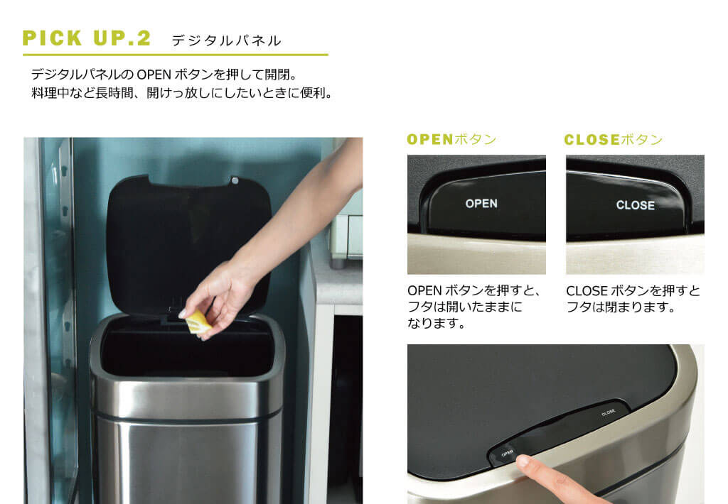 デジタルパネルでフタを開けっ放しにしておくことも可能。
