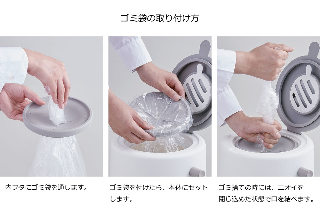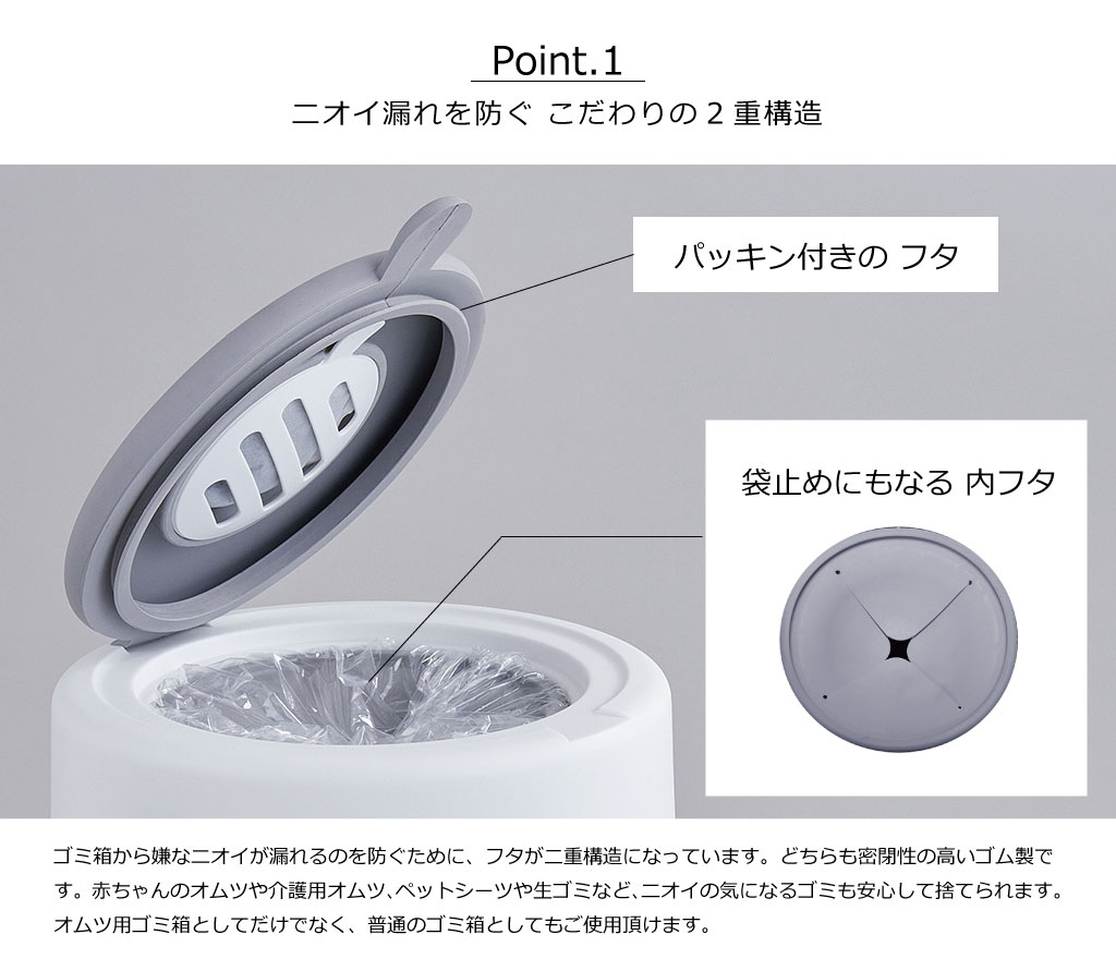 赤ちゃんのオムツや介護用オムツ、ペットシーツや生ゴミなど、ニオイの気になるゴミを安心して捨てられるので、オムツ用ゴミ箱としてだけでなく、普通のゴミ箱としてもご使用頂けます。