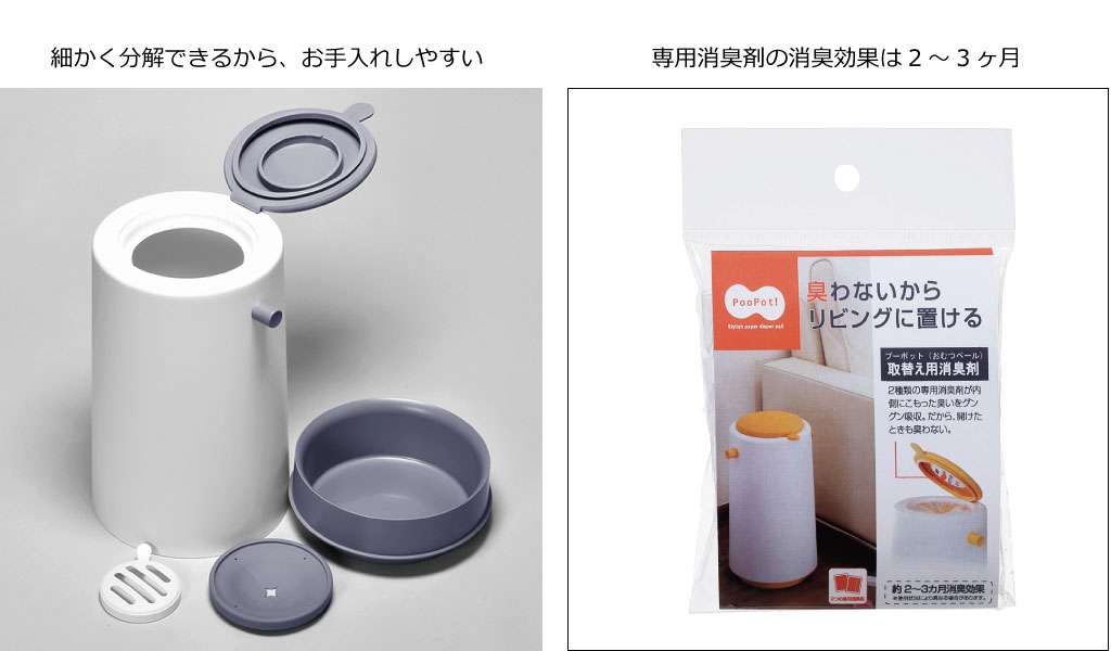 2種類の専用消臭剤が付属しています。クオリティの高い日本製です。