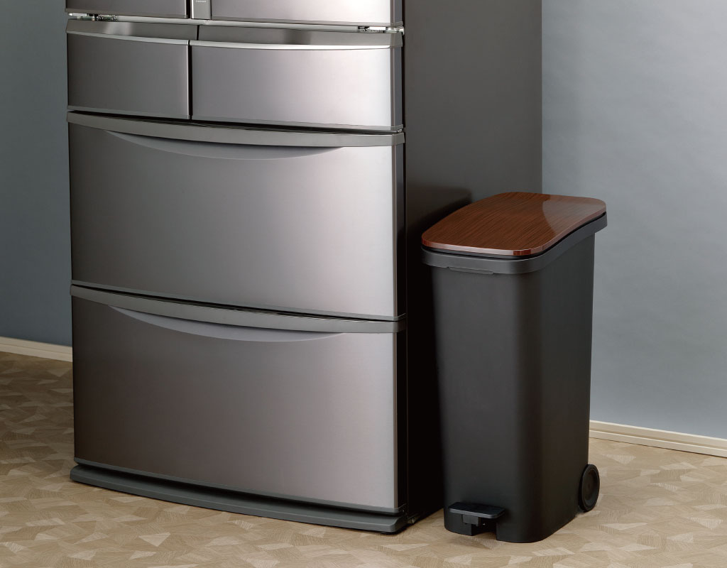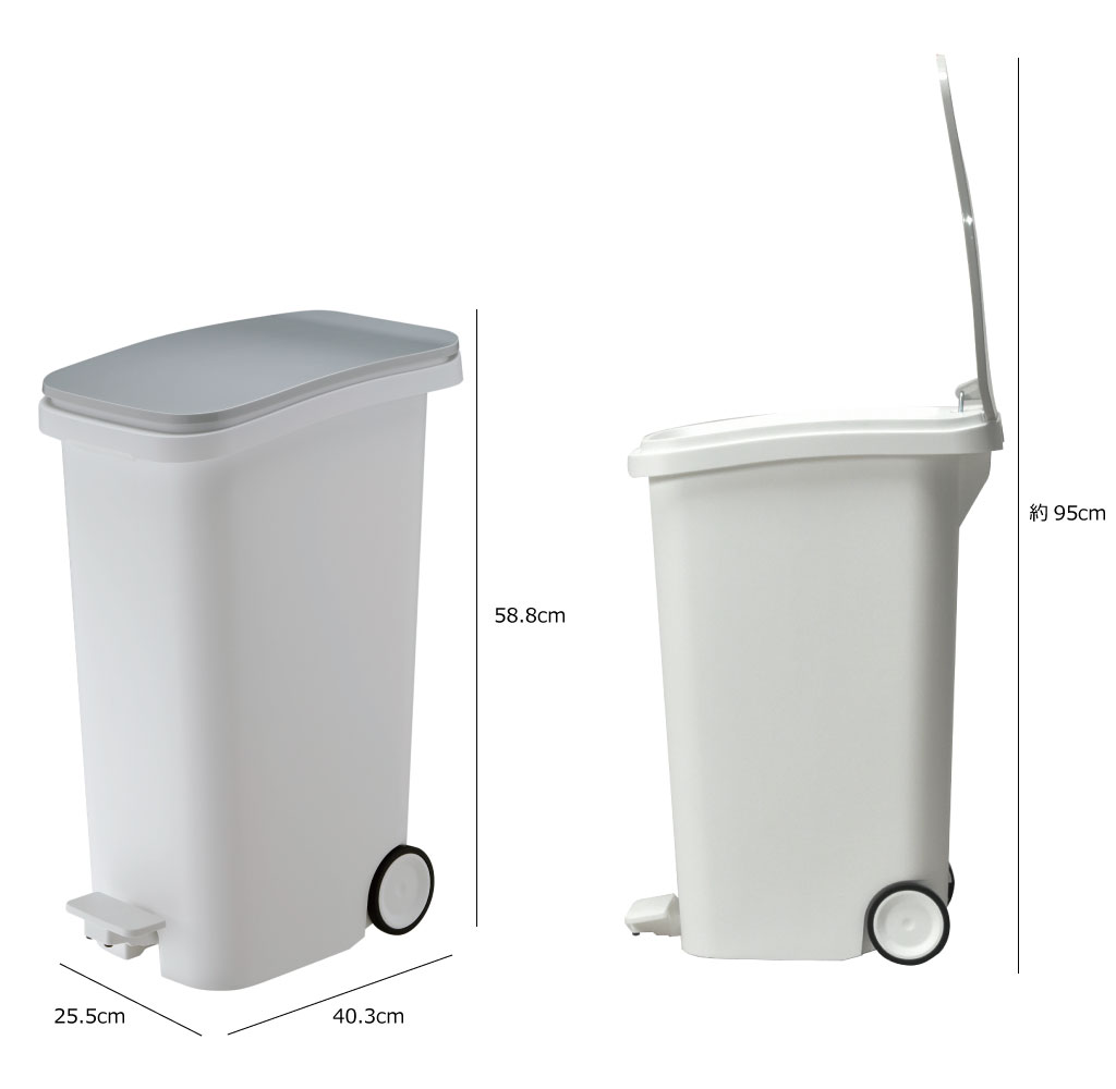 本体幅25.5cmとスリムな作りで、分別用に2つ並べても50cm余のスペースに収まります。スリムさと、角を落とした丸みのあるデザインで、圧迫感を感じさせません。