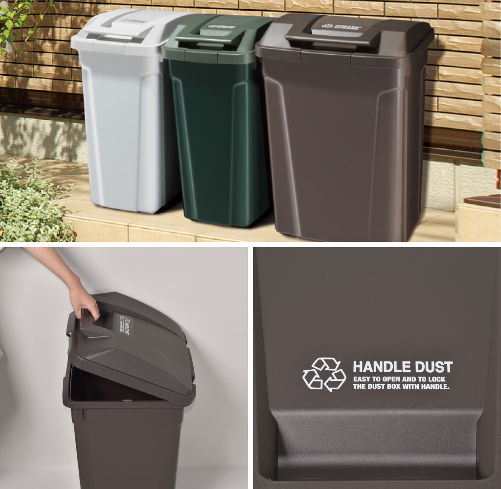 蓋にはしっかりと握れるハンドルが付いています。ゴミ袋を持っているときなども片手でらくらく開け閉めができます。