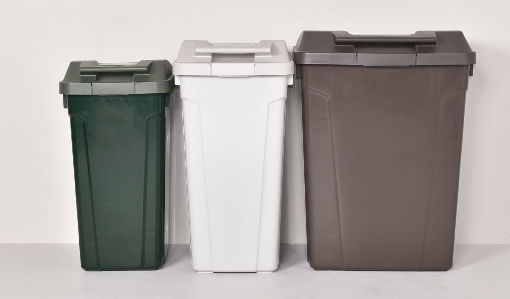 一人暮らしにちょうどいい35Lサイズ、キッチンの生ゴミ入れなどに最適な45Lサイズ、たっぷり入る70Lサイズ、