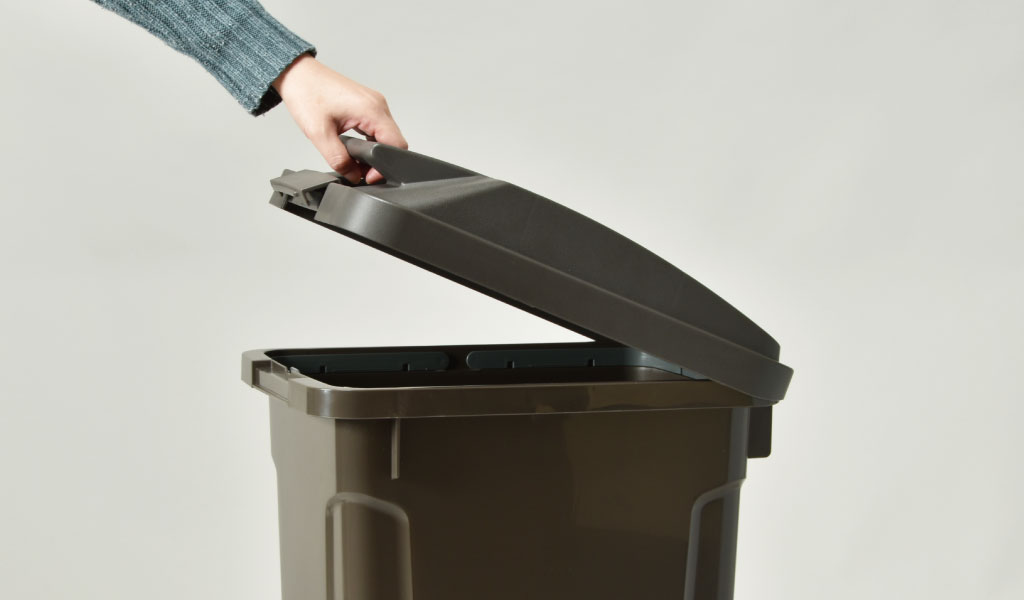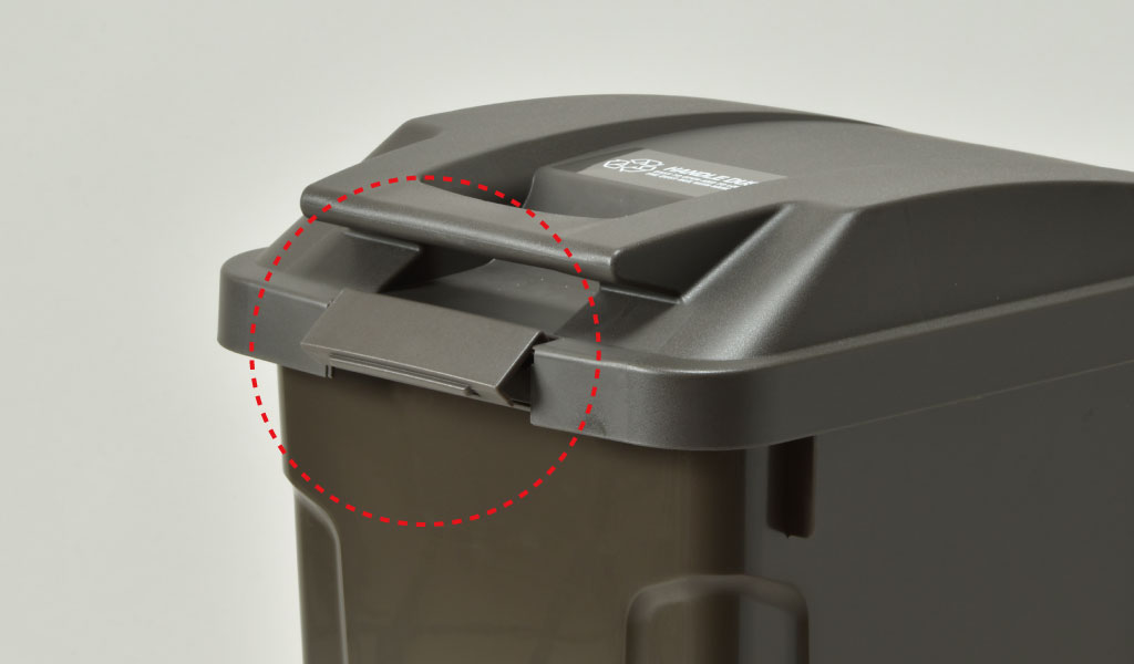 蓋にはがっちりと閉まるロックが付いており、小さなお子様が倒してしまったり、ペットがいたずらをしてもこぼれず安心です。また、ロックで密閉するので臭いが漏れず、キッチンやベランダで生ごみ用としてお使いいただけます。