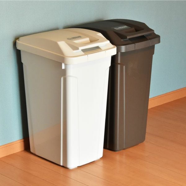 ゴミ箱の中の臭いが漏れない、倒れてもこぼれないロック付きのゴミ箱です。