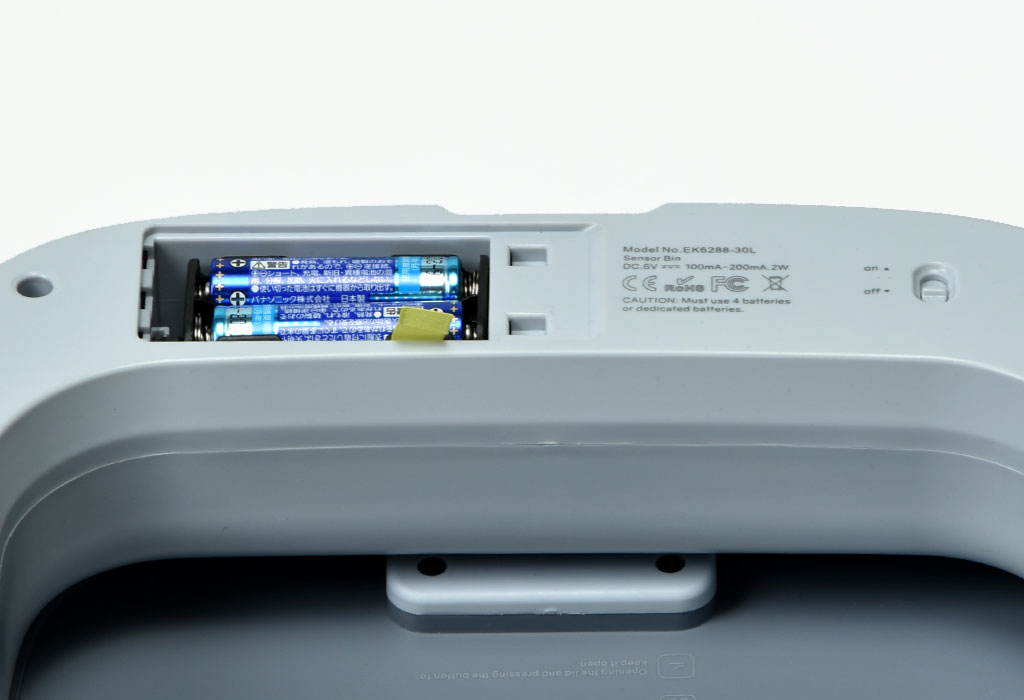 単3乾電池4本で動くのでコードがなく、設置しやすくなっています。