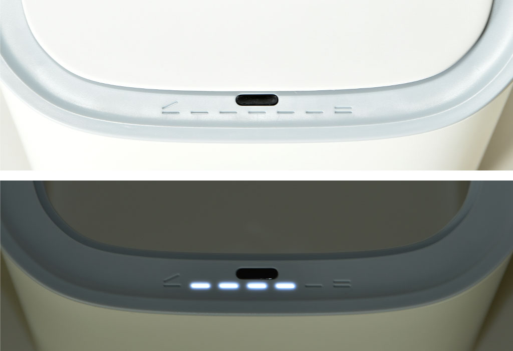 センサーの範囲から手を遠ざけると、右から左へライトが5秒点滅して蓋が閉まります。