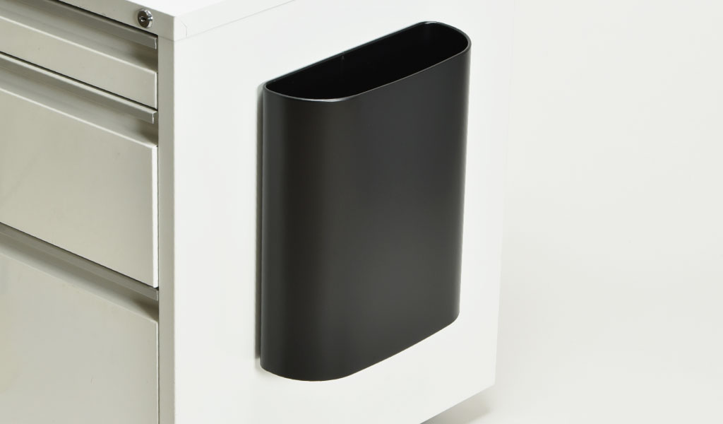 スペースが限られたデスク周りに最適な幅9cm。スリムなデザインがデスクの内側に付けても邪魔にならず、椅子の出し入れもスムーズです。ゴミ箱としてはもちろんのこと、書類入れにも最適です。