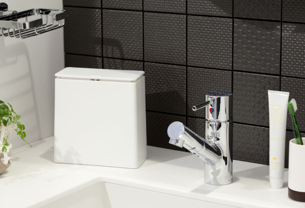 TUBELOR mini flapは、手狭なシンクまわりやトイレの横に置いても邪魔にならないコンパクトサイズのゴミ箱です。