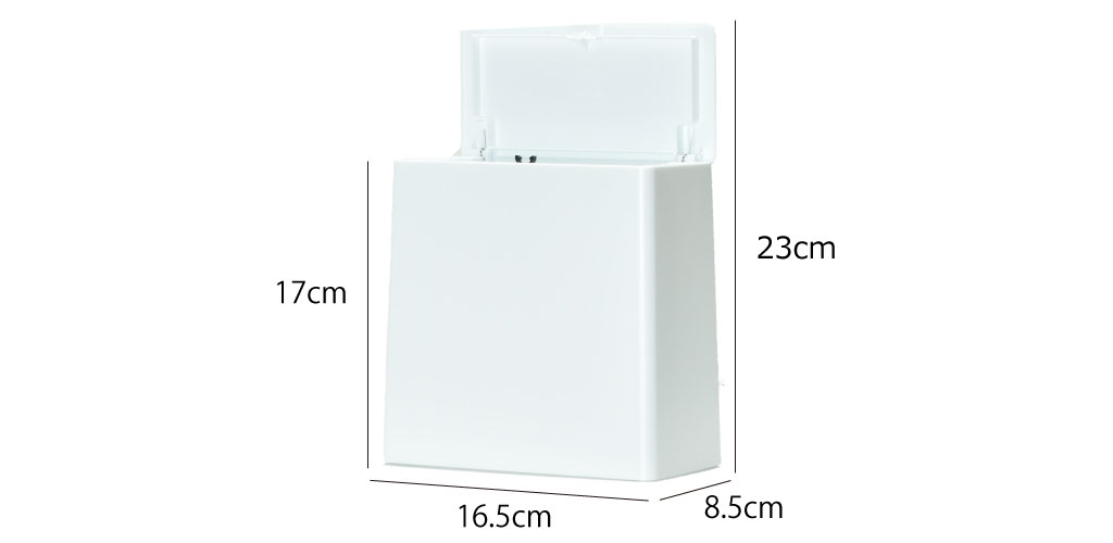 TUBELOR mini flapは、横幅16.5cmとコンパクトなサイズなので、台の上に置いてもぴったりなコンパクトサイズのゴミ箱です。