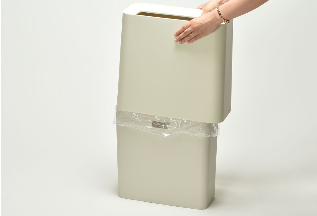本体に、ゴミ袋をつければ表からゴミ袋が見えないので、生活感をしっかり隠すことができ、お部屋をすっきり見せることができます。
