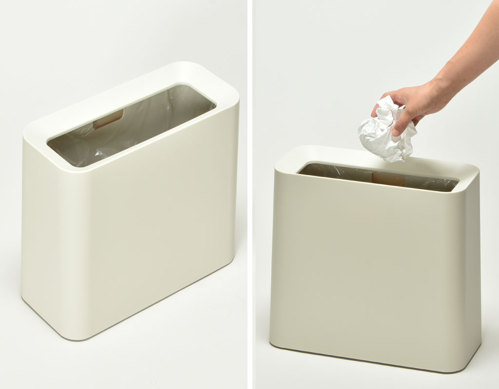 大きい開口部は、ゴミが捨てやすい作りになっています。片手でサッとゴミを捨てることができるので、デスクまわりなどのゴミ箱としておすすめです。