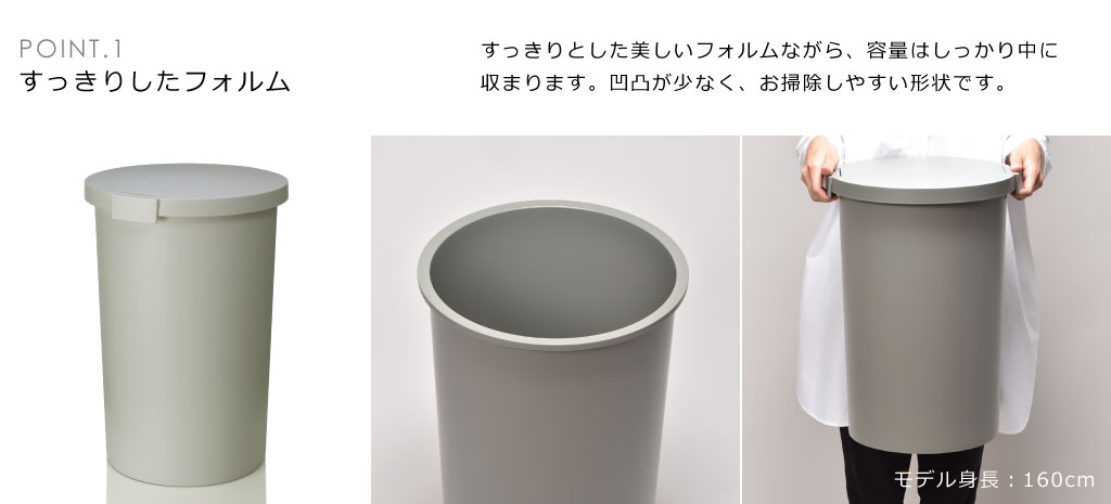 シンプルな形状とマットな質感のあるおしゃれゴミ箱。フタロック付きで気になるニオイ漏れを防いでくれる