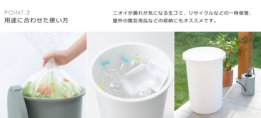ニオイが漏れにくいフタロック付きゴミ箱。