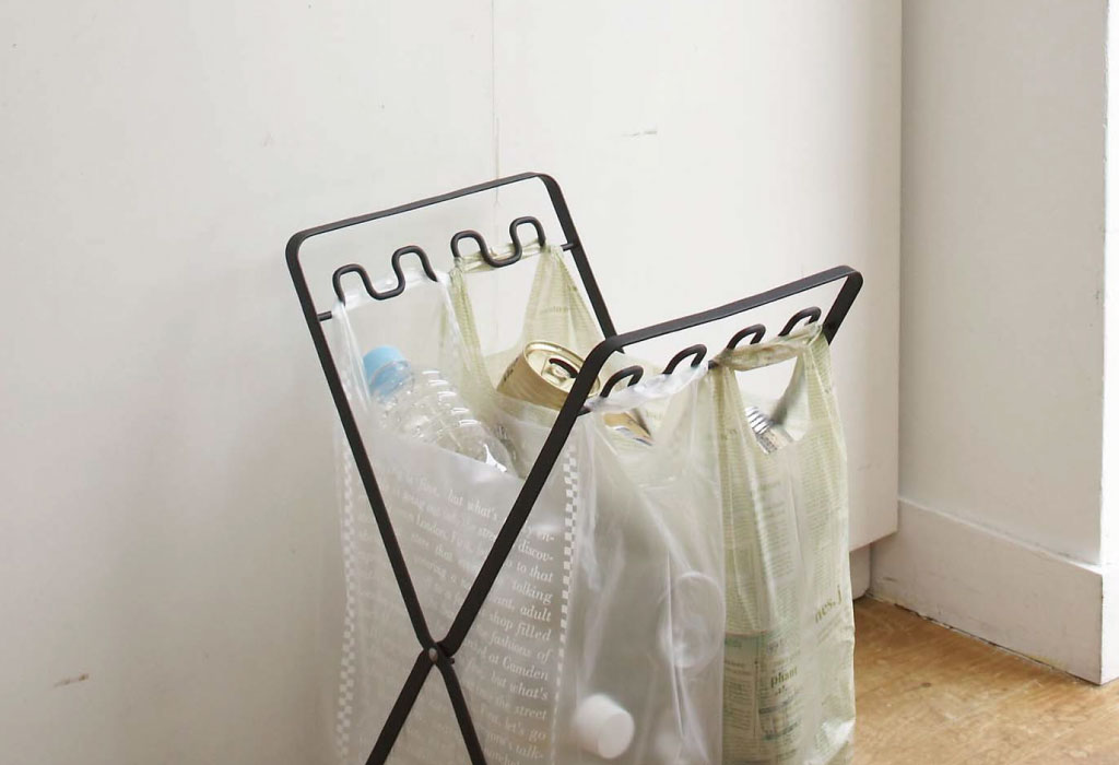 折り畳みスタンドを使ってレジ袋をごみ入れに
