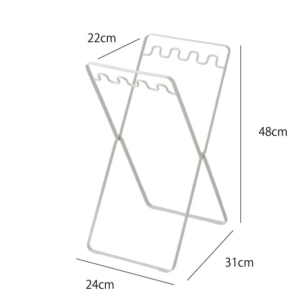 レジ袋を掛けてゴミ入れとして活用できる折り畳みスタンドです。フレームのみのシンプルな構造で、お部屋に圧迫感を与えず設置できます。