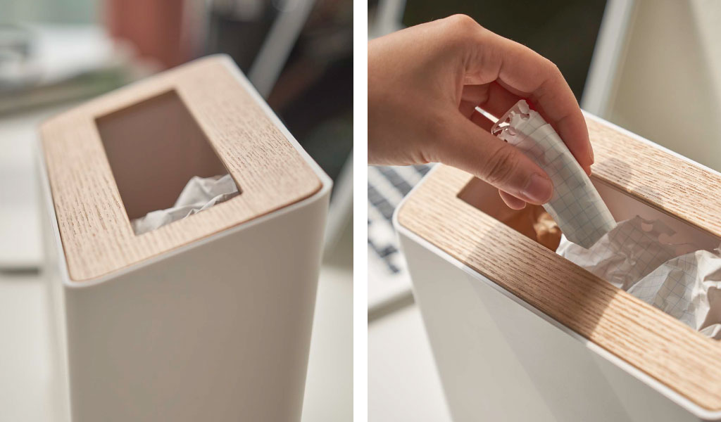 どうしても生活感が出てしまいがちなゴミ箱。この卓上ゴミ箱なら、木目が美しいおしゃれな蓋が目隠ししてくれます。コンパクトタイプだから、ご自宅のデスクやベッドサイドはもちろん、オフィスでもお使いいただけます。