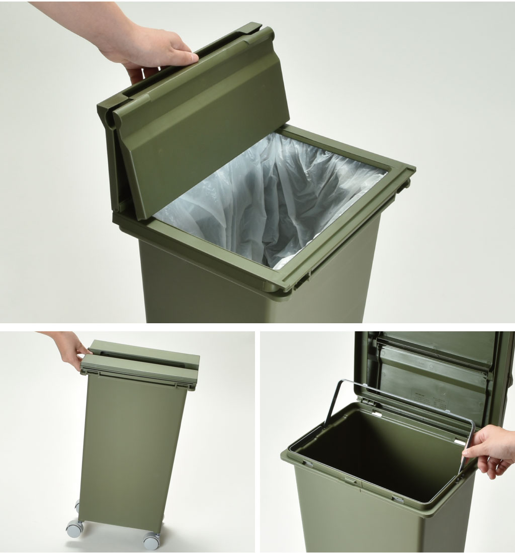 スライド ダストボックス 20Lは、開け方が3通りあるスライド式ゴミ箱です。折りたたんで開ければ高さを抑えて置くこともできます。スリムでシンプルなデザインがどんな空間にもなじみます。