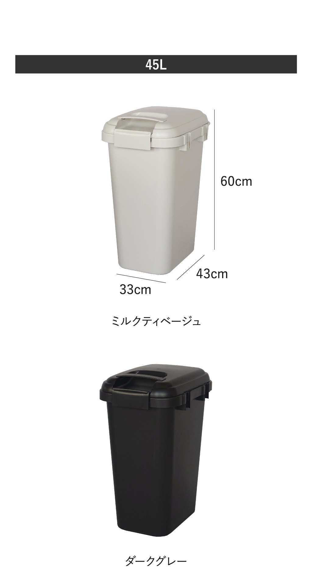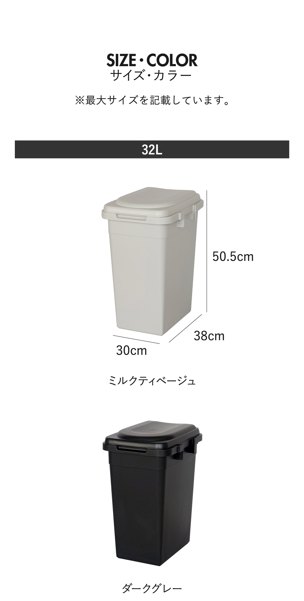 ゴミの量やスペースに合わせて、32リットルと45リットルからお選びください。