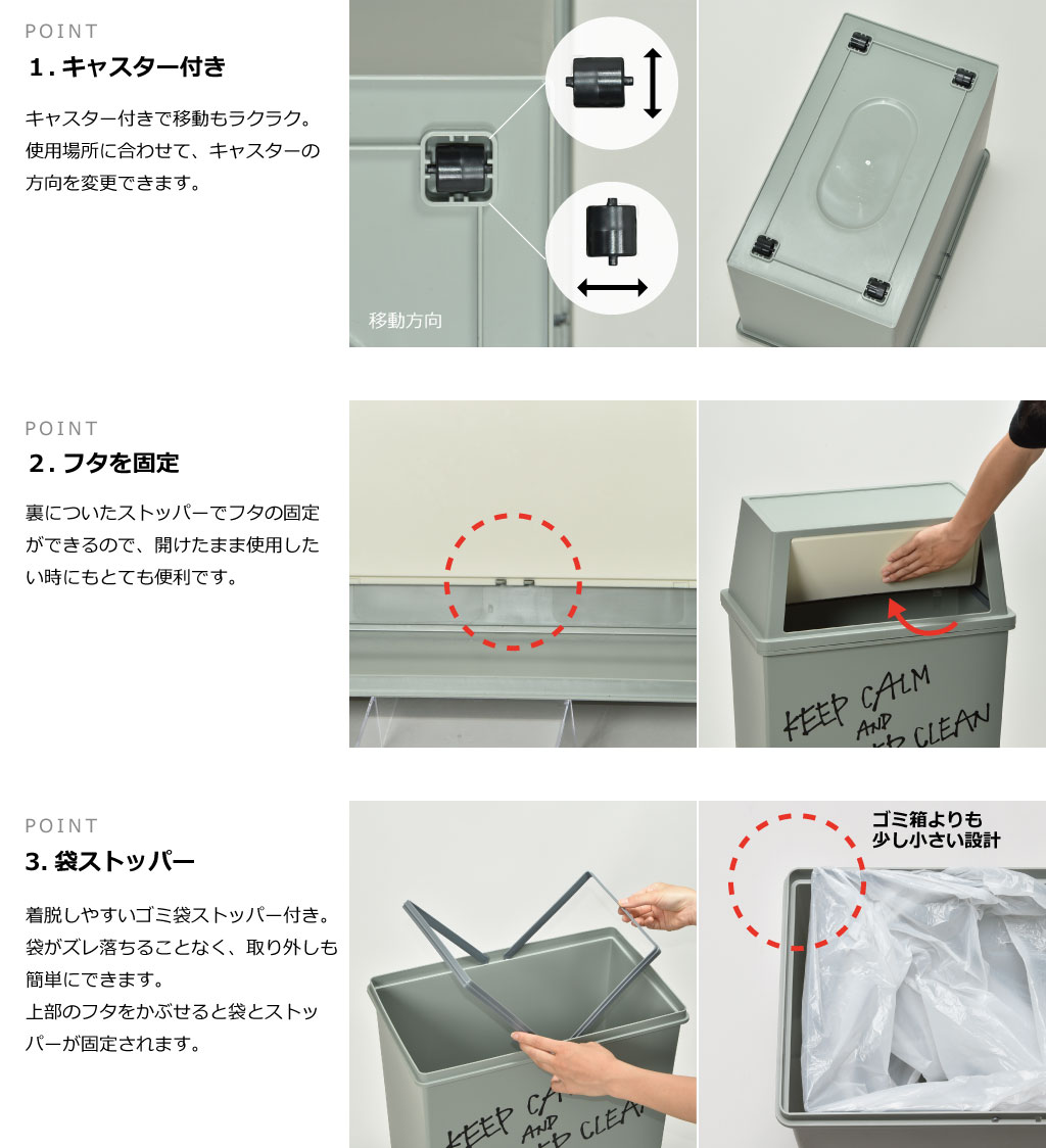 さらに、容量違いのサイズとの組み合わせも可能なので、場所や必要な容量に、分別して使い分けるのにもおすすめです。
