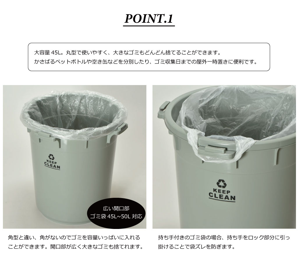 容量はたっぷりと45Lあるので、かさばるペットボトルや空き缶などのゴミをまとめて置いたり、分別したりするのにオススメです。