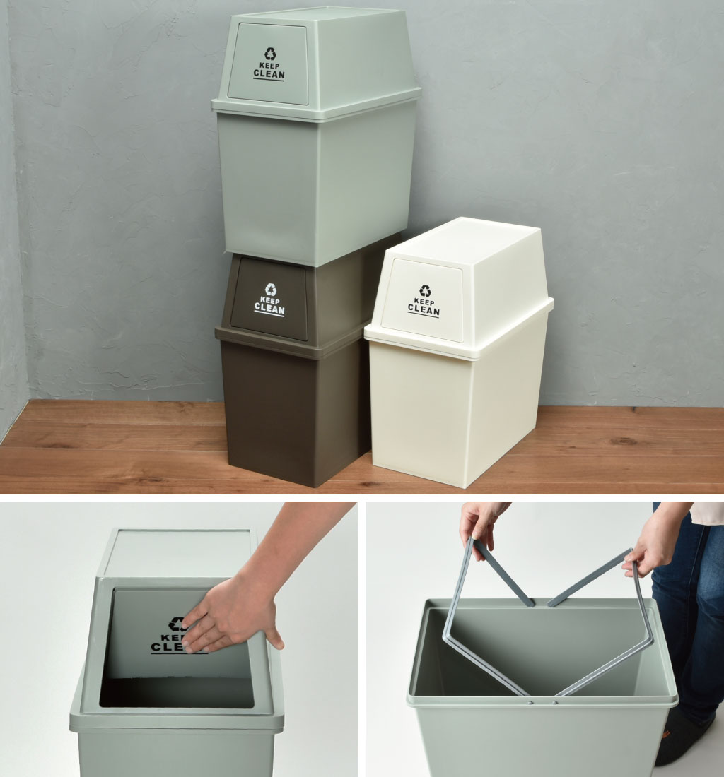 置きたい場所に合わせて、積み重ねたり、並べたりできる省スペースなゴミ箱です。