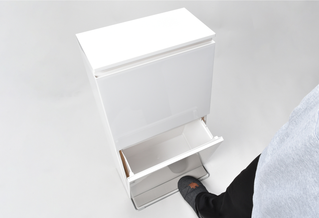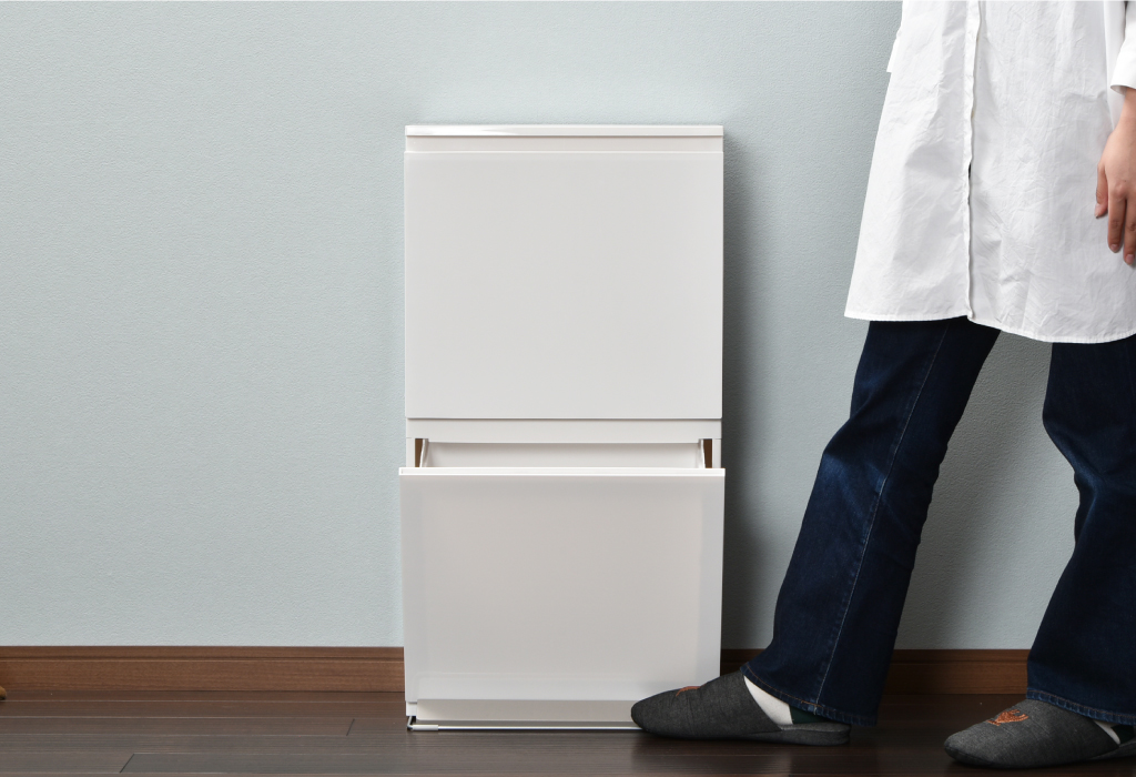 上段はフラップ式、下段はペダル式で簡単に開閉できるので、楽にゴミを捨てることができます。