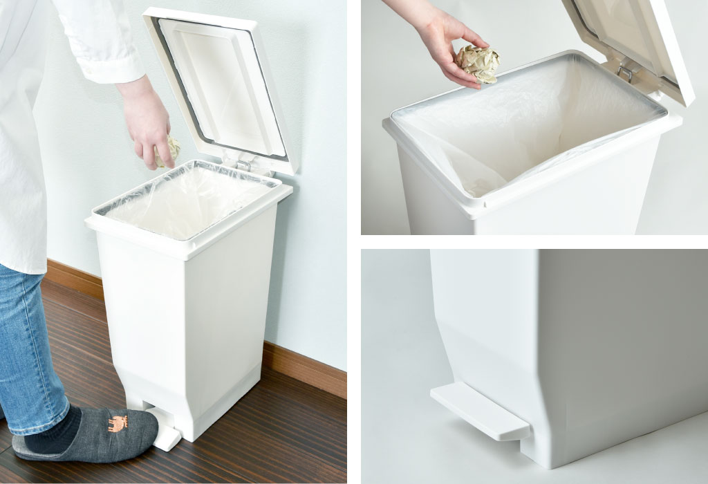 キッチン用ゴミ箱、赤ちゃんのおむつやペットのトイレシート処分など、臭いが気になるゴミもフタに触れることなく開閉できます。