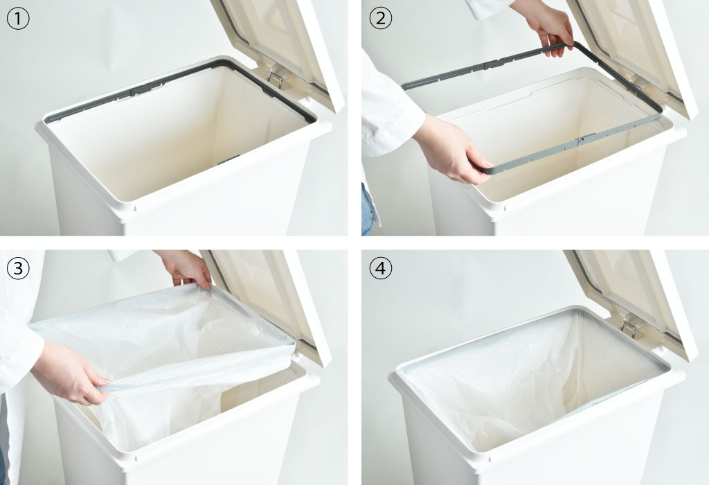 内側にある袋留めを取り外し、ゴミ袋を引っ掛けるだけの簡単設置です。