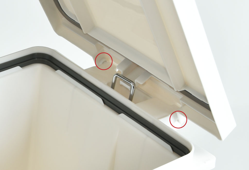 フタの取り付けの際は、フタを本体2ヶ所の凹みにはめ込みます。