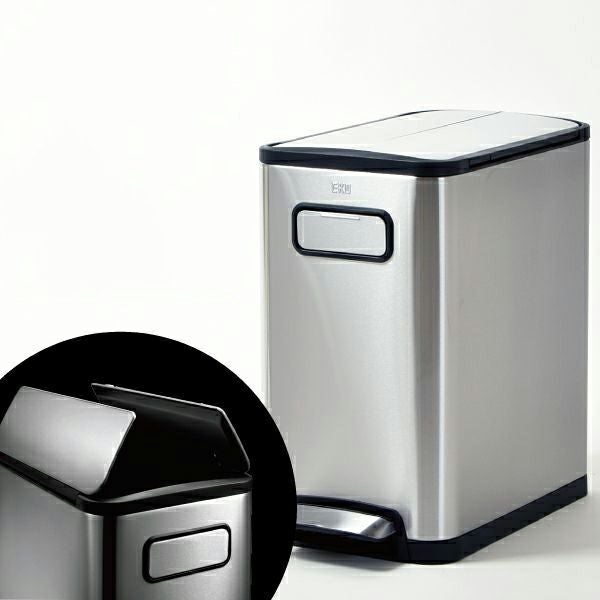 世界158カ国で愛される世界的ブランドEKOのステンレスゴミ箱です。両開きのフタは片開きに比べて開く時の高さを抑えられるのでカウンターの下等のスペースにもおすすめです。