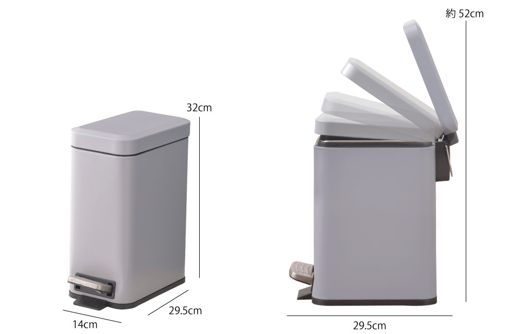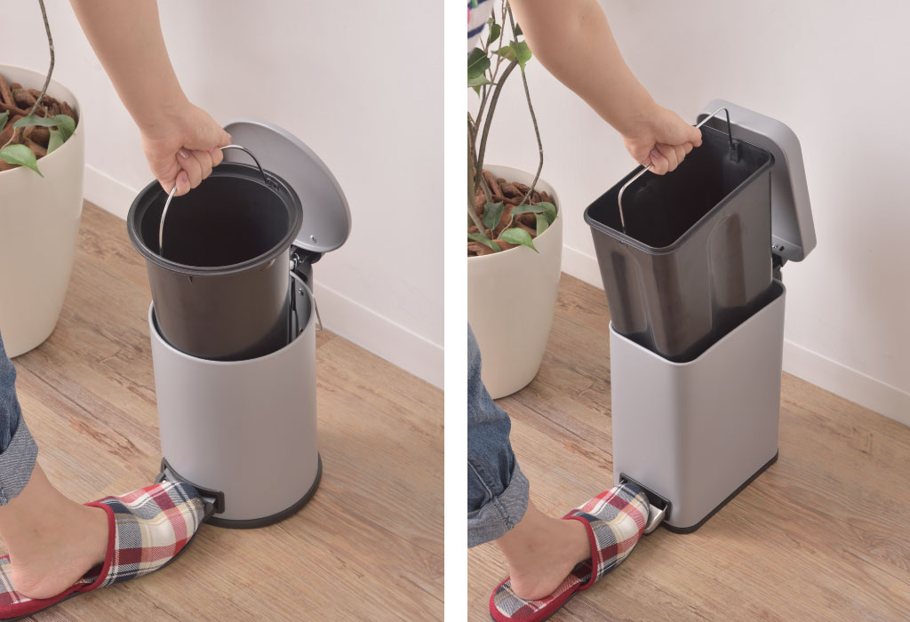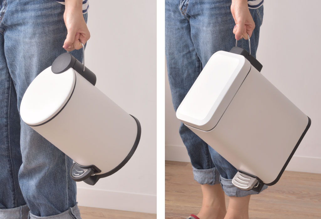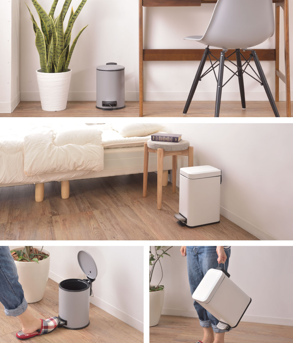 3Lと5Lの容量サイズなので、リビングのテーブルと観葉植物などの置物との間のちょっとしたスペースや、トイレのサニタリー用など、隙間スペースにピッタリなサイズ感です。