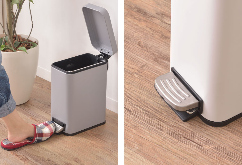 踏みやすいペダルで開閉するタイプのゴミ箱なので、ゴミ箱に触れることなく開けることができます。