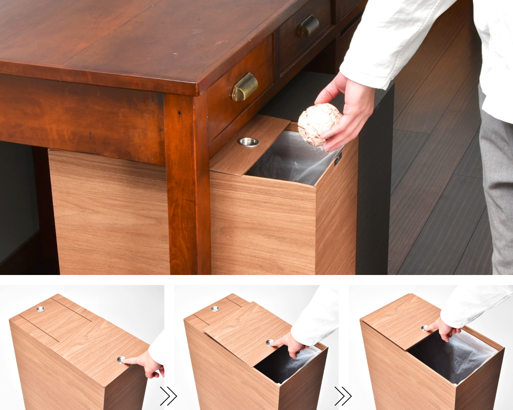 上品な木目調のデザインでインテリアのようにお部屋の雰囲気に馴染むゴミ箱。