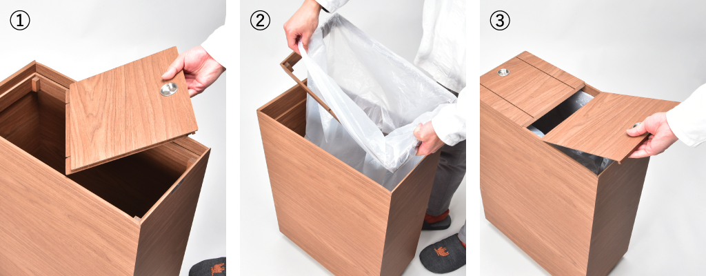 3.袋が外から見えないよう調整してフタをしたら完了