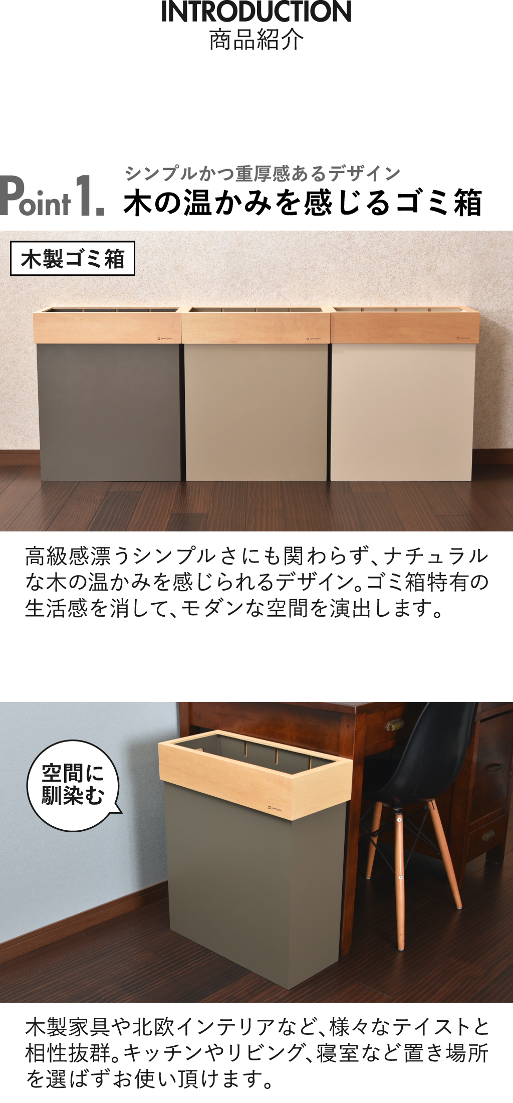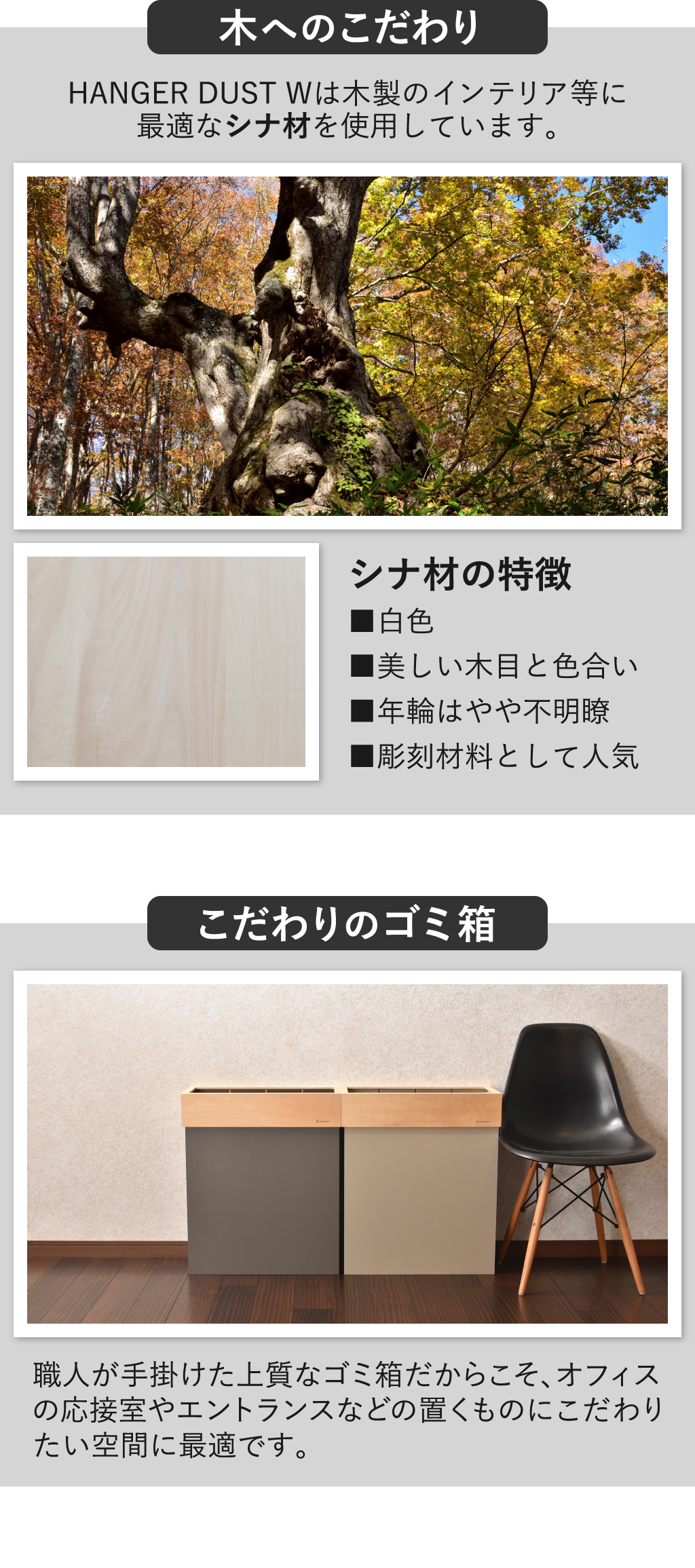 高級感漂うシンプルさとナチュラルな木の温かみを感じられるゴミ箱「HANGER DUST W」。