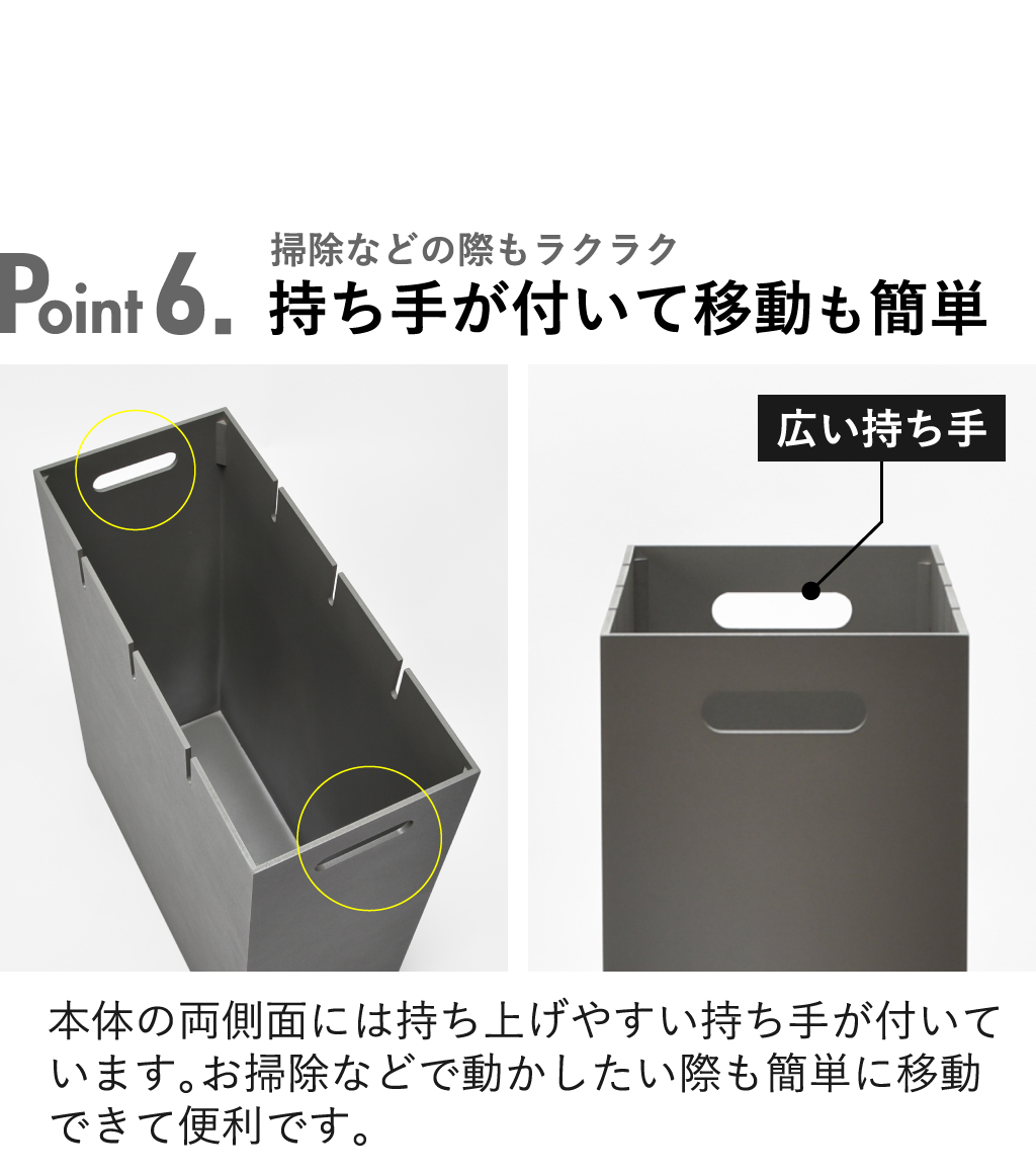 本体の溝にゴミ箱をかけるだけで簡単に分別可能。