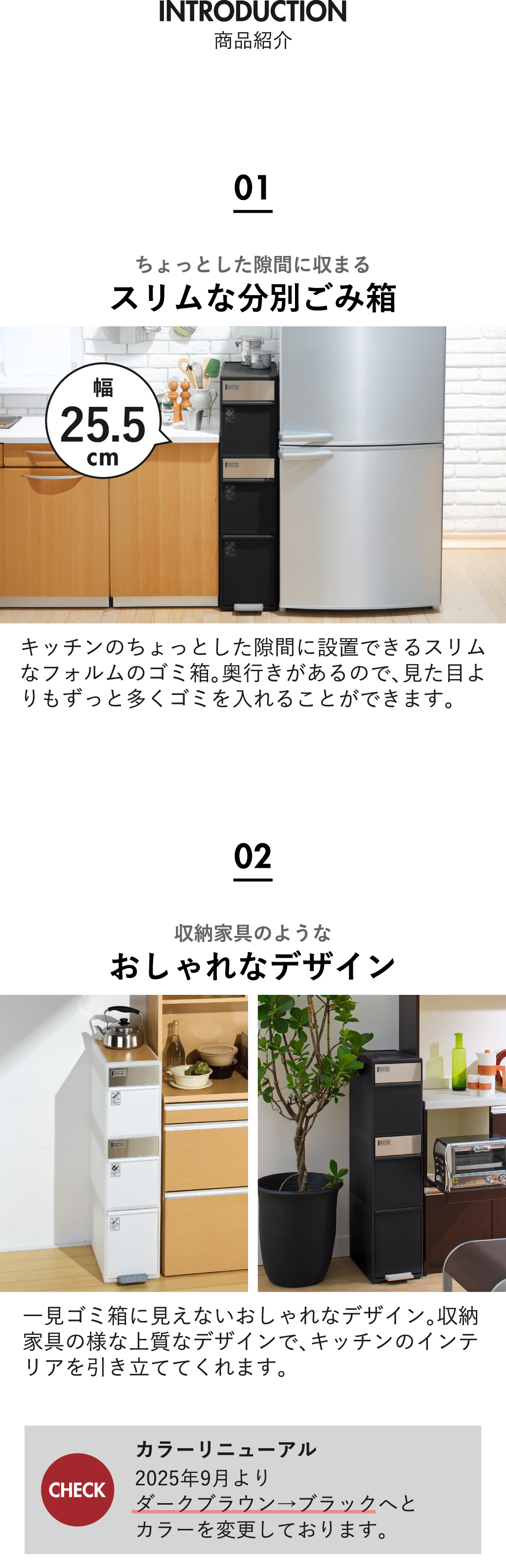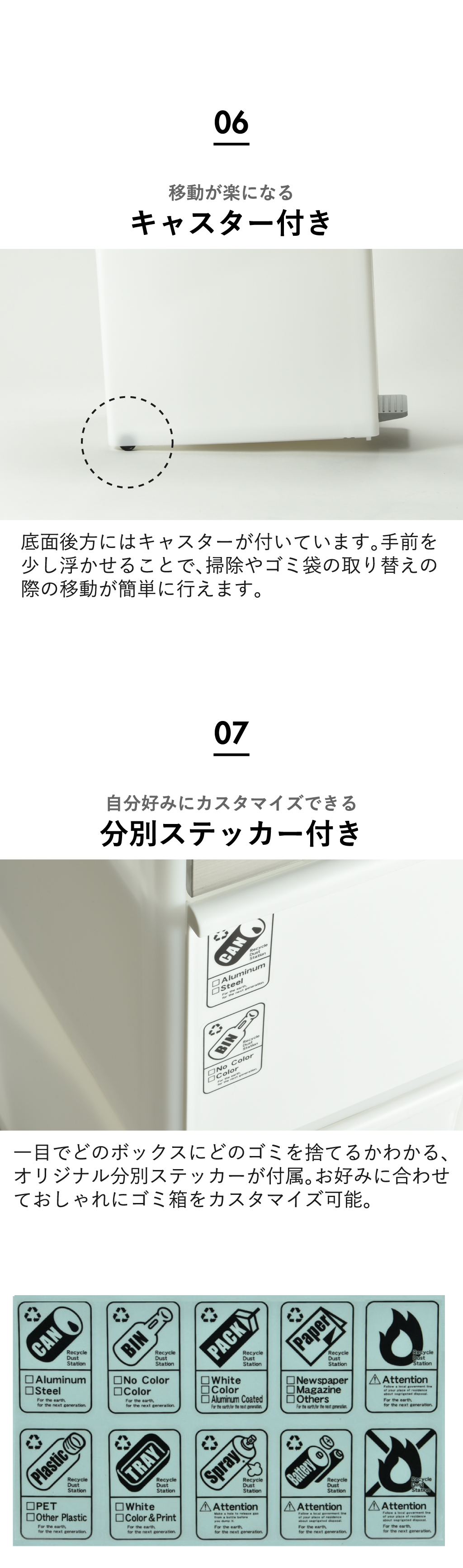 ゴミ箱の色は、それぞれホワイトとブラックの2色からお選びいただけます。