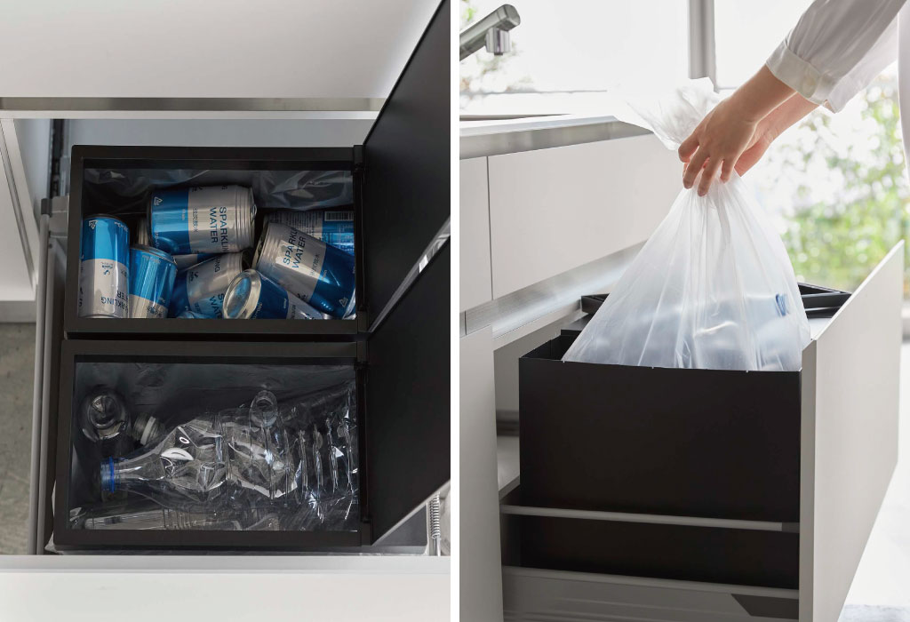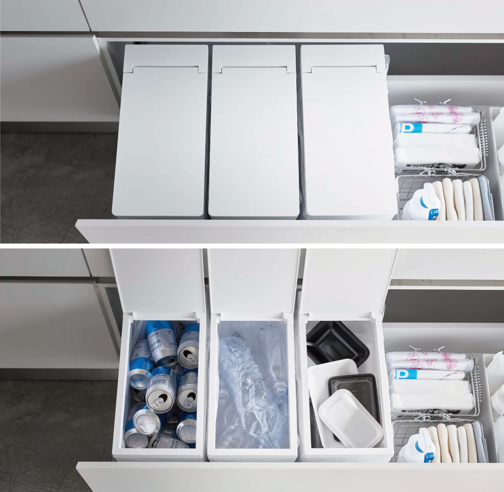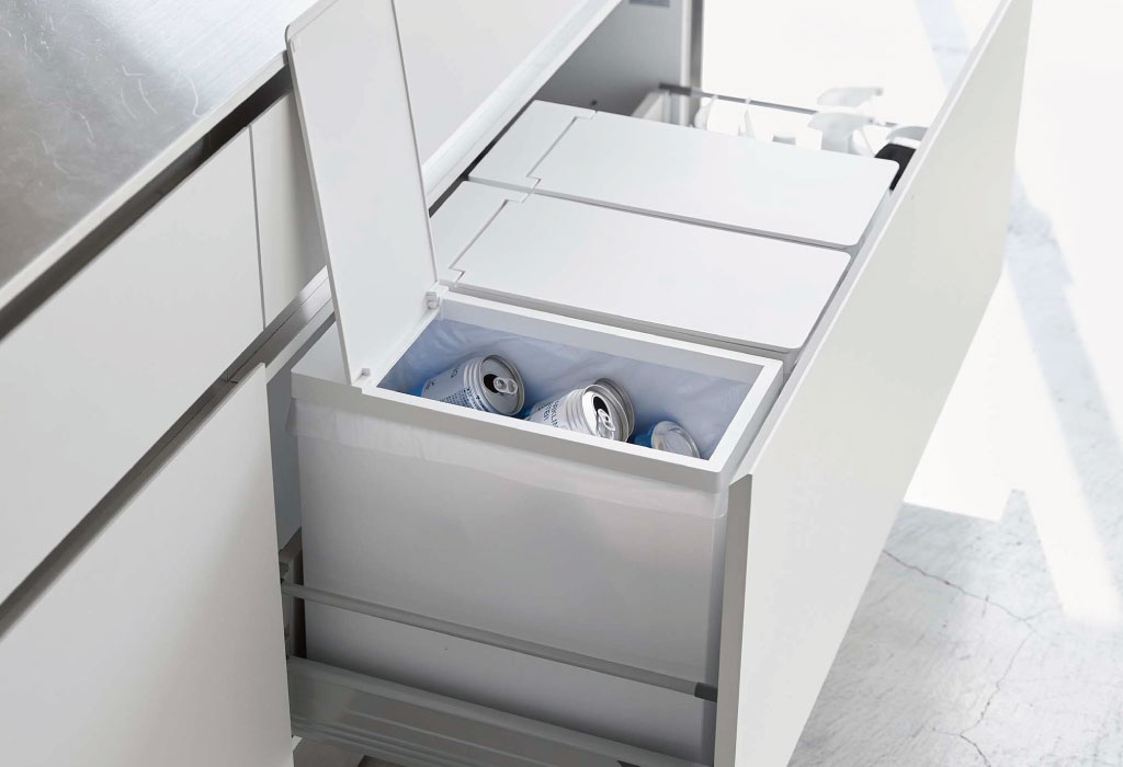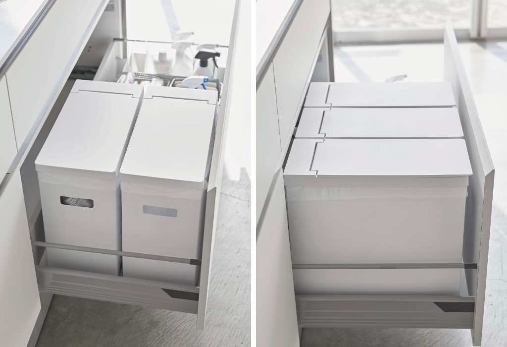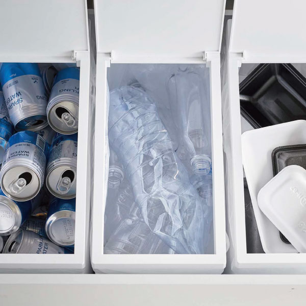 約幅19cmとスリムなので、シンク下に2、3台と並べて分別用にも使用できます。